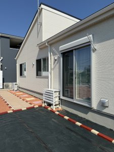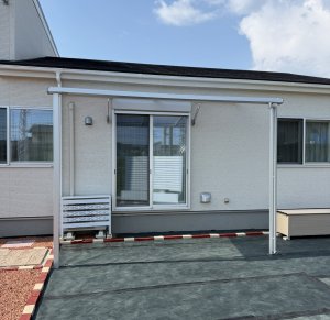 >テラスに屋根(庇)を取付け、雨除けスペースを作る