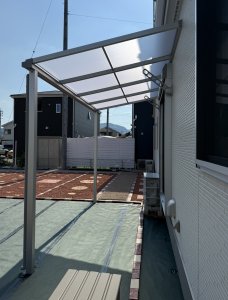 テラスに屋根(庇)を取付け、雨除けスペースを作る